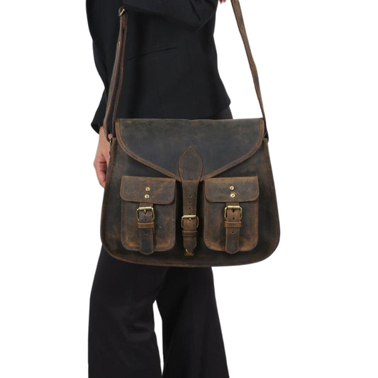 14-Inch Genuine Leather Purse – Women’s Crossbody Satchel, Shoulder Bag, Tote, and Travel Handbag